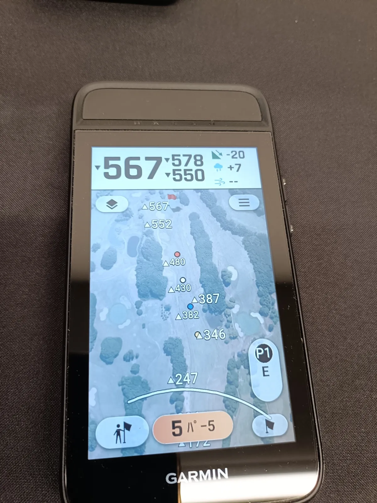 同じく初登場の機能が「航空写真表示」(別途有料サブスクリプションへの加入が必要)。通常のコースレイアウトマップではわかりづらい林や池のリアルな写真が見られるので、ブラインドホールなどでも迷わず自信を持ってプレーすることが可能に。