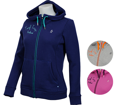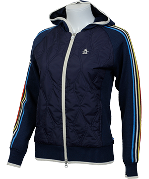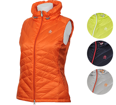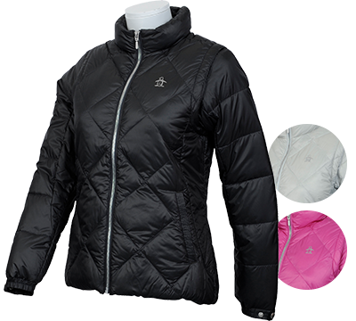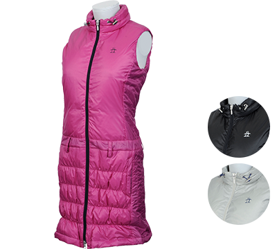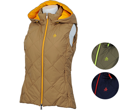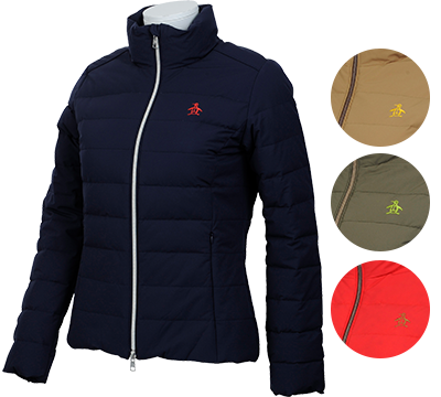中綿に穴を開けてダウンを絡ませるという特殊製法で、従来のダウンブルゾンとは一線を画した新機能、FLEXERMO(フレクサーモ)を採用。これにより、中のダウンが動かないので、縫い目を最小限に抑えられ、高い保温性とストレッチ性が実現しました。表地には撥水機能も備えた冬のゴルフに欠かせないアイテムです。