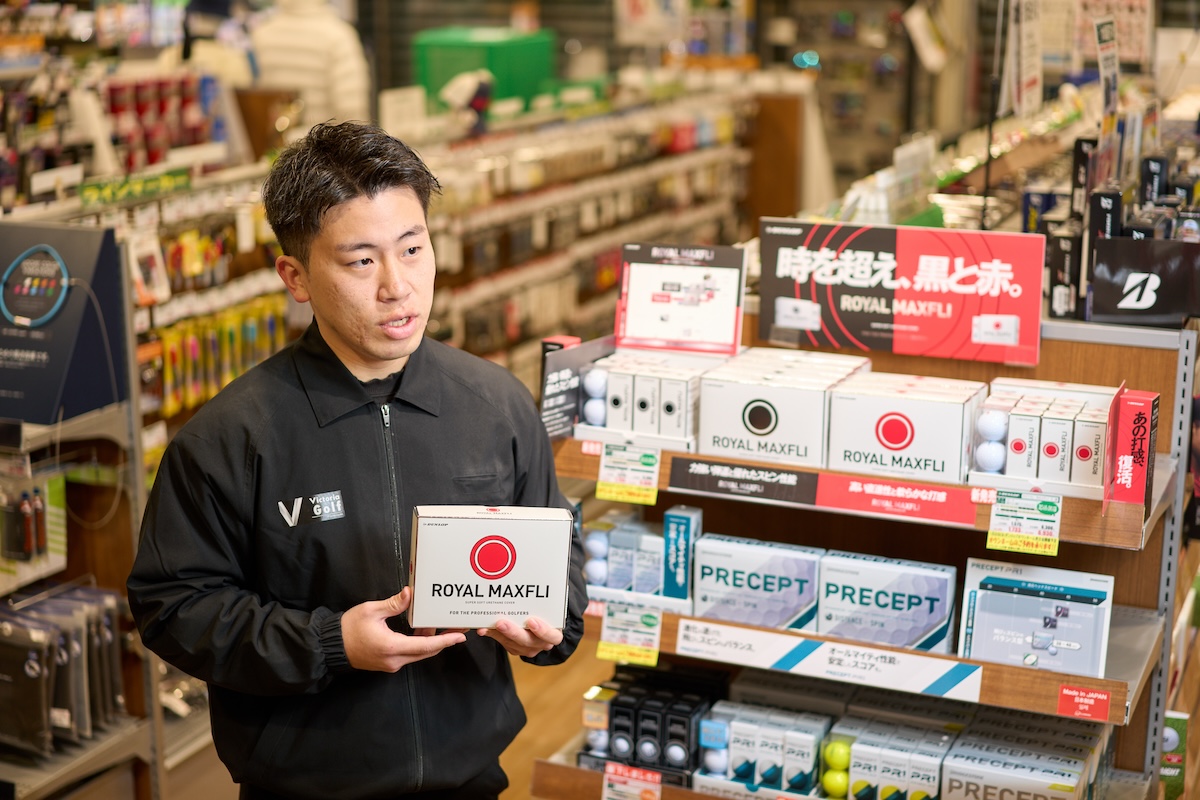 「『ROYAL MAXFLI』は“糸巻きバラタ”という製法で作られ、そのソフトな心地良い打感で一世を風靡しました。『ROYAL MAXFLI赤』はそのソフトな打感を継承しながら、飛距離性能やアプローチスピンを進化させたボールになります。市場にあるボールの中でもトップクラスに軟らかい設計になっていて、一度打ったらヤミツキになること間違いなしです。ソフトでつぶれる分、スピンを抑えた直進性の高いショットが打てることも特徴的で、しっかり飛距離が出てくれます」(岡田さん)