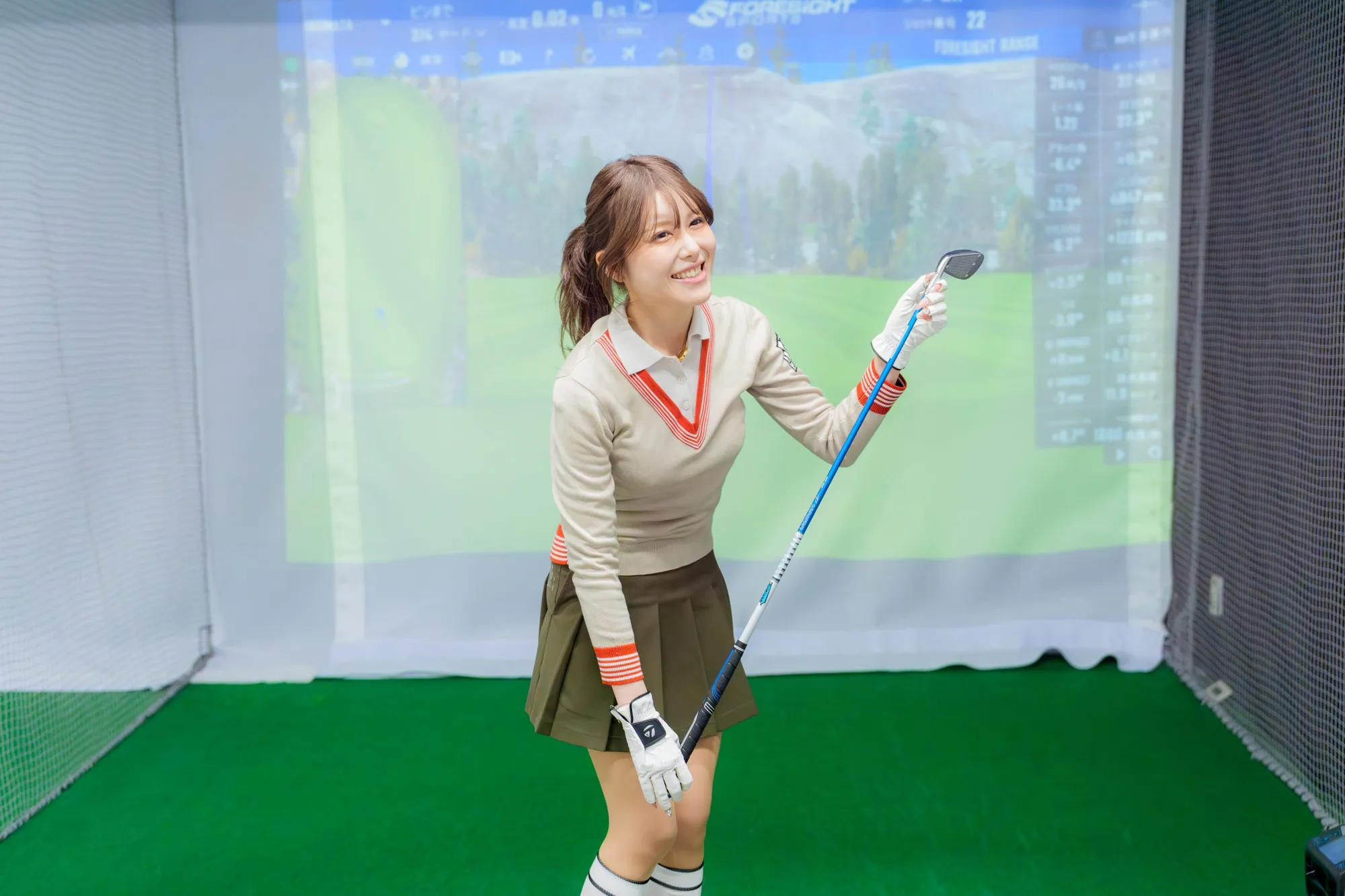 千尋さん「私自身、クセのあるスイングだと思うんですけど、アイアンの楽しさを知りたくて。今までシャフトを打ち比べたことがなかったので楽しみです」