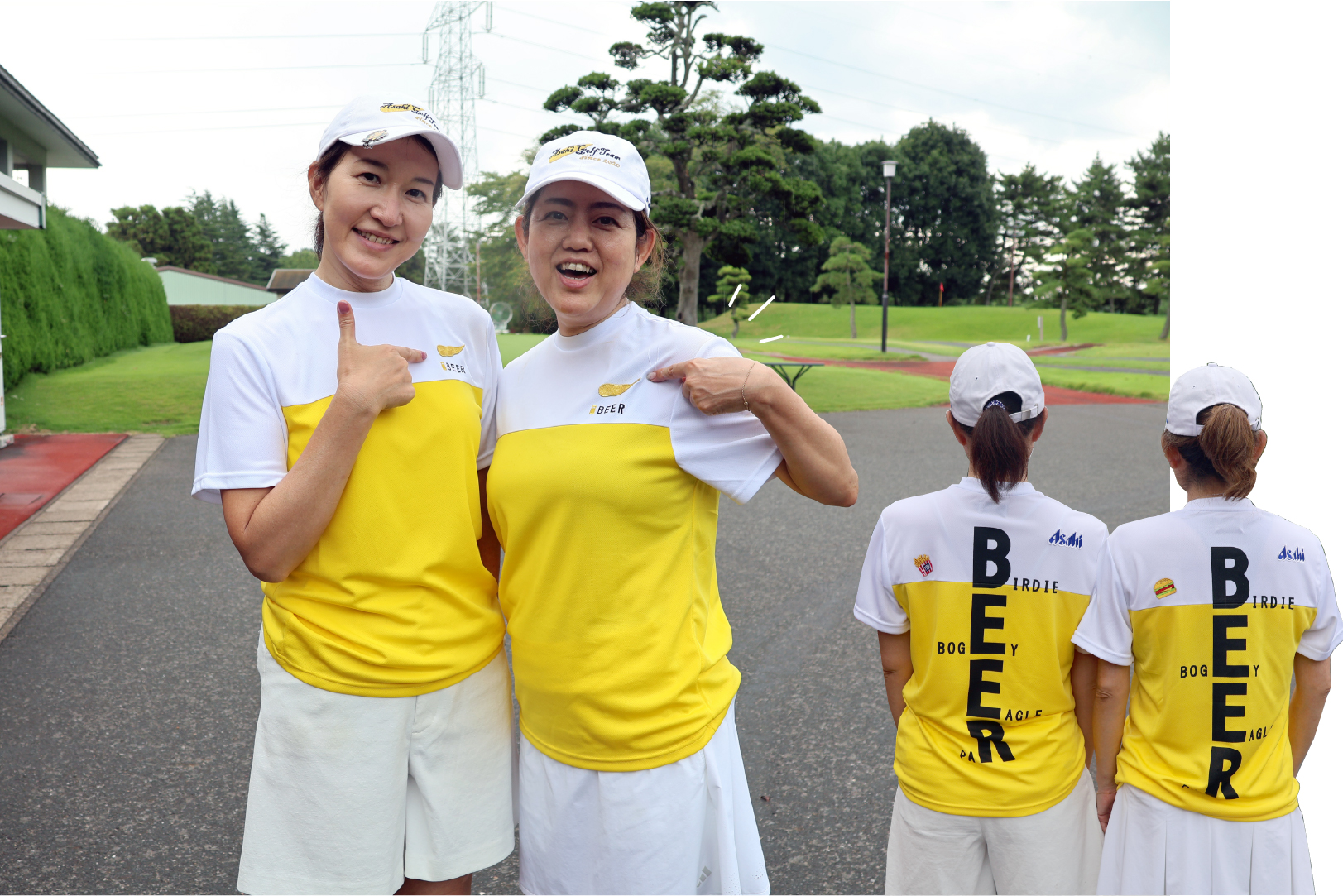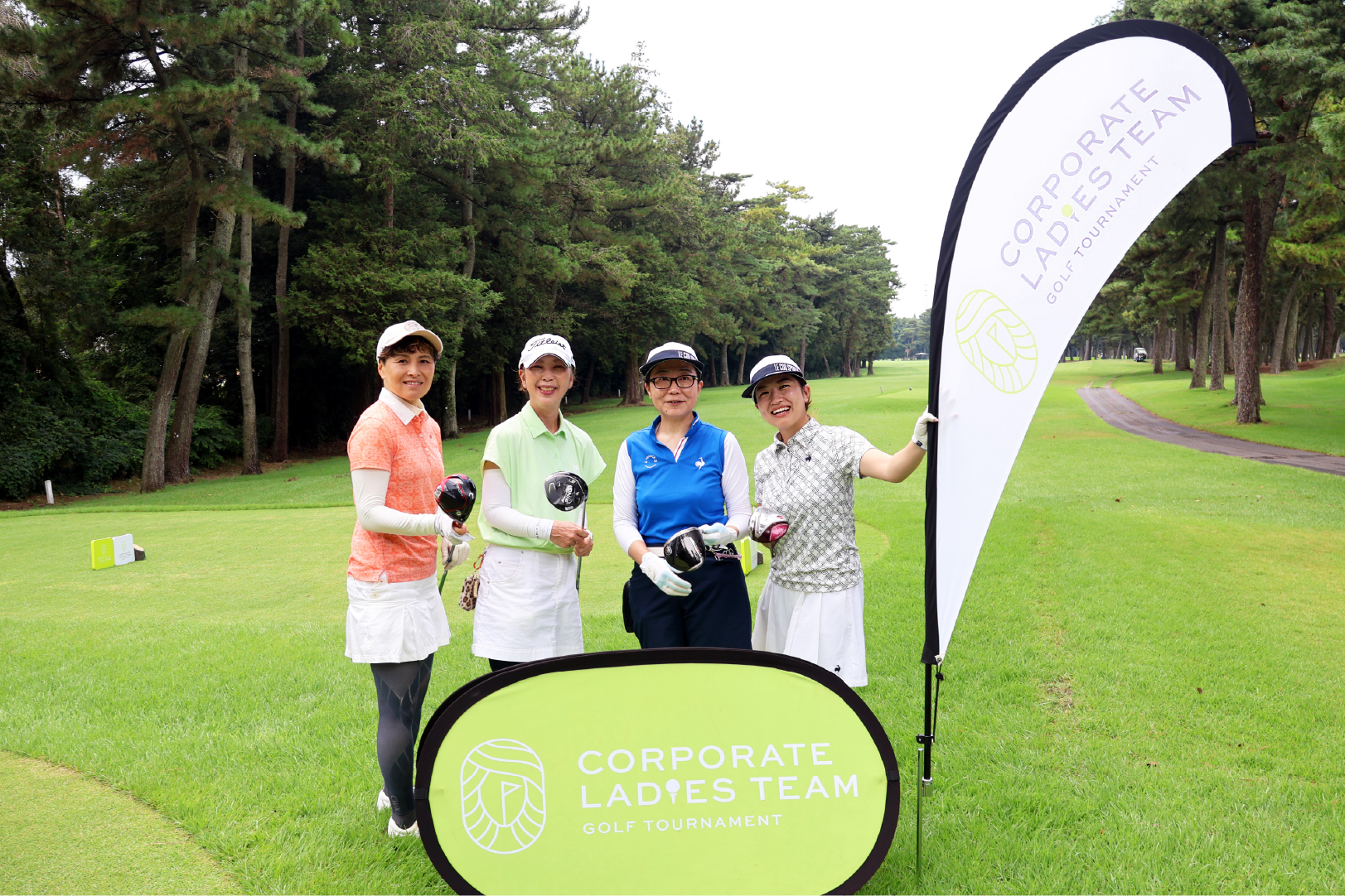 コースには競技特有の緊張感だけでなく、ナイスショットのたびに笑顔があふれる和やかな雰囲気も広がっていました。企業名のワッペン入りのチームウェアや、お手製のペアアイテムを身につけたチームも登場。真剣さと楽しさが同居する、女性ならではの企業対抗戦らしい光景でした。