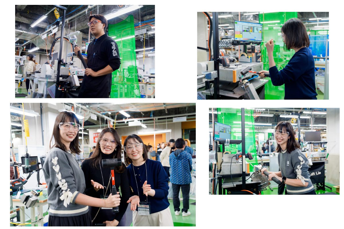 普段見られない組立工場に入れ、ライ角調整やグリップテープ巻きを体験できるめったにない機会とあって、参加応募が殺到。数十倍の抽選倍率を勝ち抜けた6名が参加し、「一人一人に合ったクラブづくり」を体感しました。