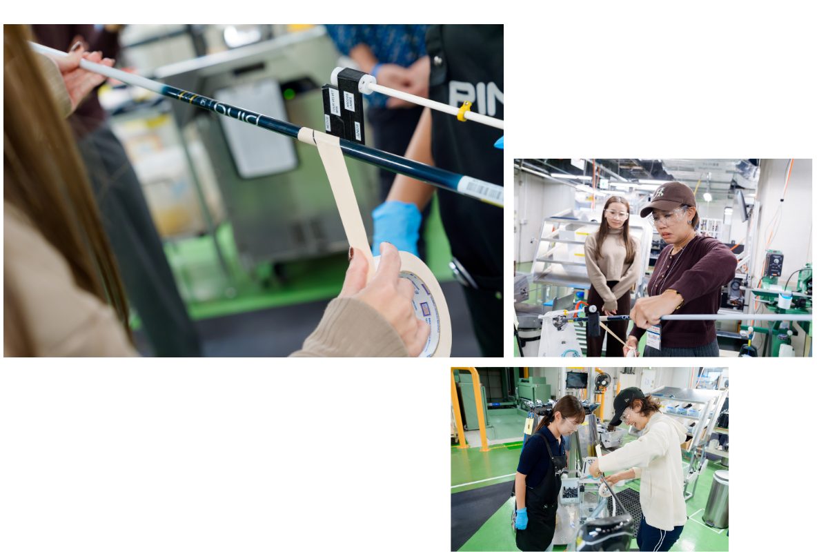 「たった1本巻くだけでも難しい。これを何本も正確に、スピーディに巻くなんてすごい!」と声が上がります。国内に出荷される全てのクラブがこの工程を経ていることを知り、PING製品への信頼感が一層高まった様子でした。
