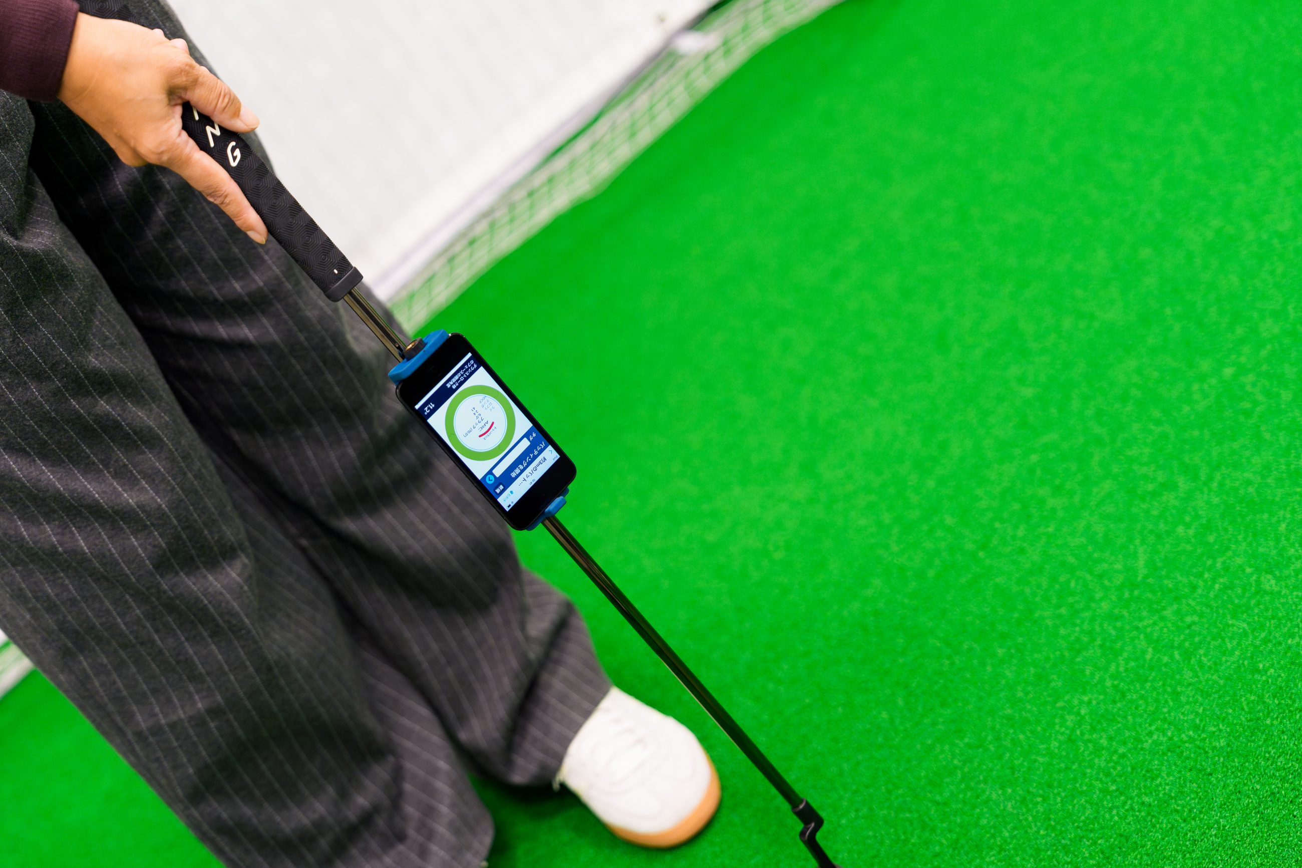 ストロークの傾向分析には、PING独自のパター計測ツール「iPING」を使用。パターに装着して3球パッティングすると、自分のストロークタイプやテンポ、最適なライ角が計測できます。