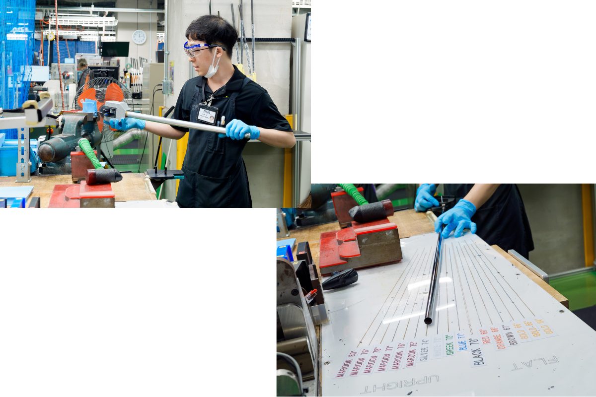 「ウッドライン、アイアンライン、パターライン、マルチラインがあり、マルチラインはオーダーの量によってその日作るクラブが変わるんです」と案内担当者。1本のクラブが完成するまでにかかる時間はおおよそ1時間で、その全工程が驚くほど丁寧に行われていました。