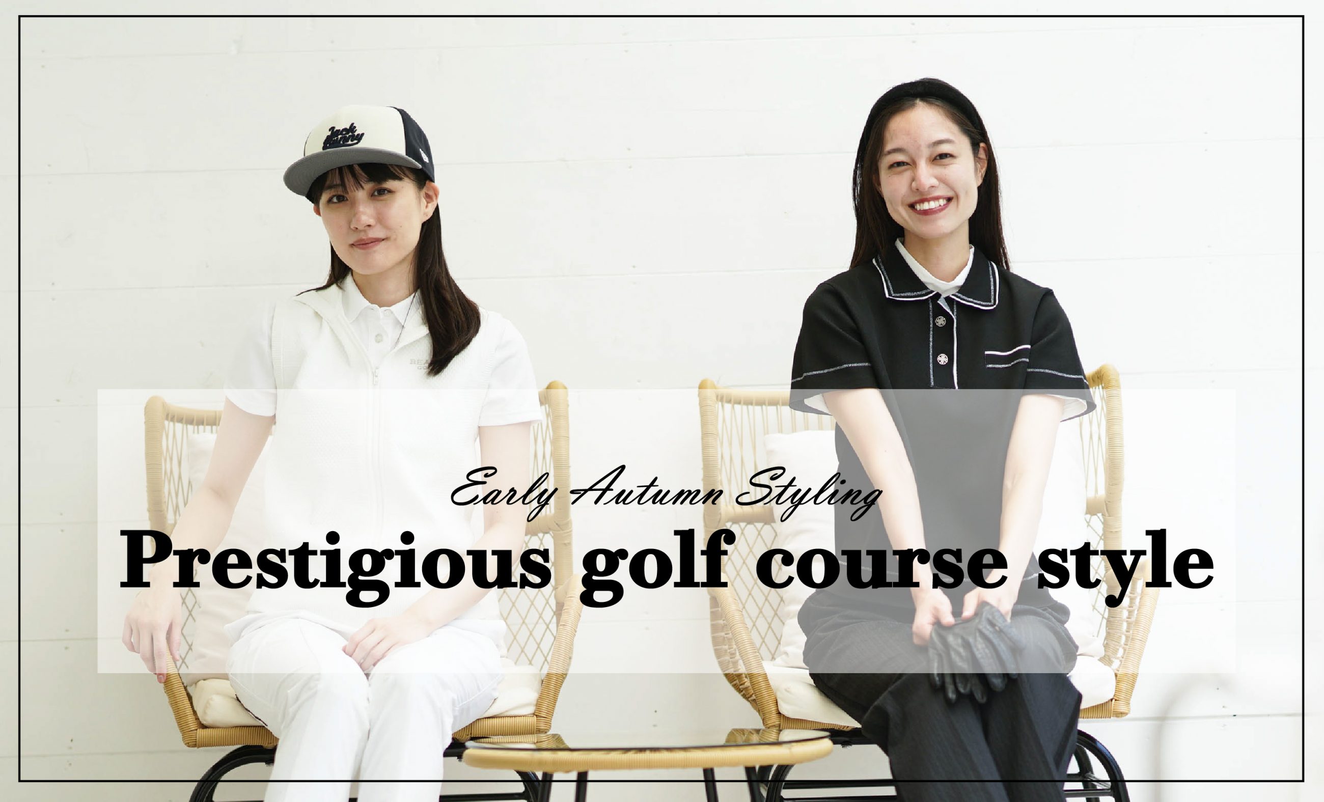 名門倶楽部において、いちばん守りたいのは、上品で理知的であること。長め丈のスカートスタイルはハードルが高いので、パンツスタイルをチョイスすることをおすすめします。パンツスタイルは、たとえ地味色でも、フェミニンさと清潔感を持ち併せた着こなしを目指したい。クリーンな白のパンツに白衿のポロシャツを合わせれば、白がリンクしてすっきりスマートで美しい。目立ちすぎるブランド名のロゴデザインは要注意ディテールですが、バックスタイルに英語の文字が入るぐらいならセーフ。定番ながらオジサン風にならない、スタイリッシュなパンツスタイルが完成します。