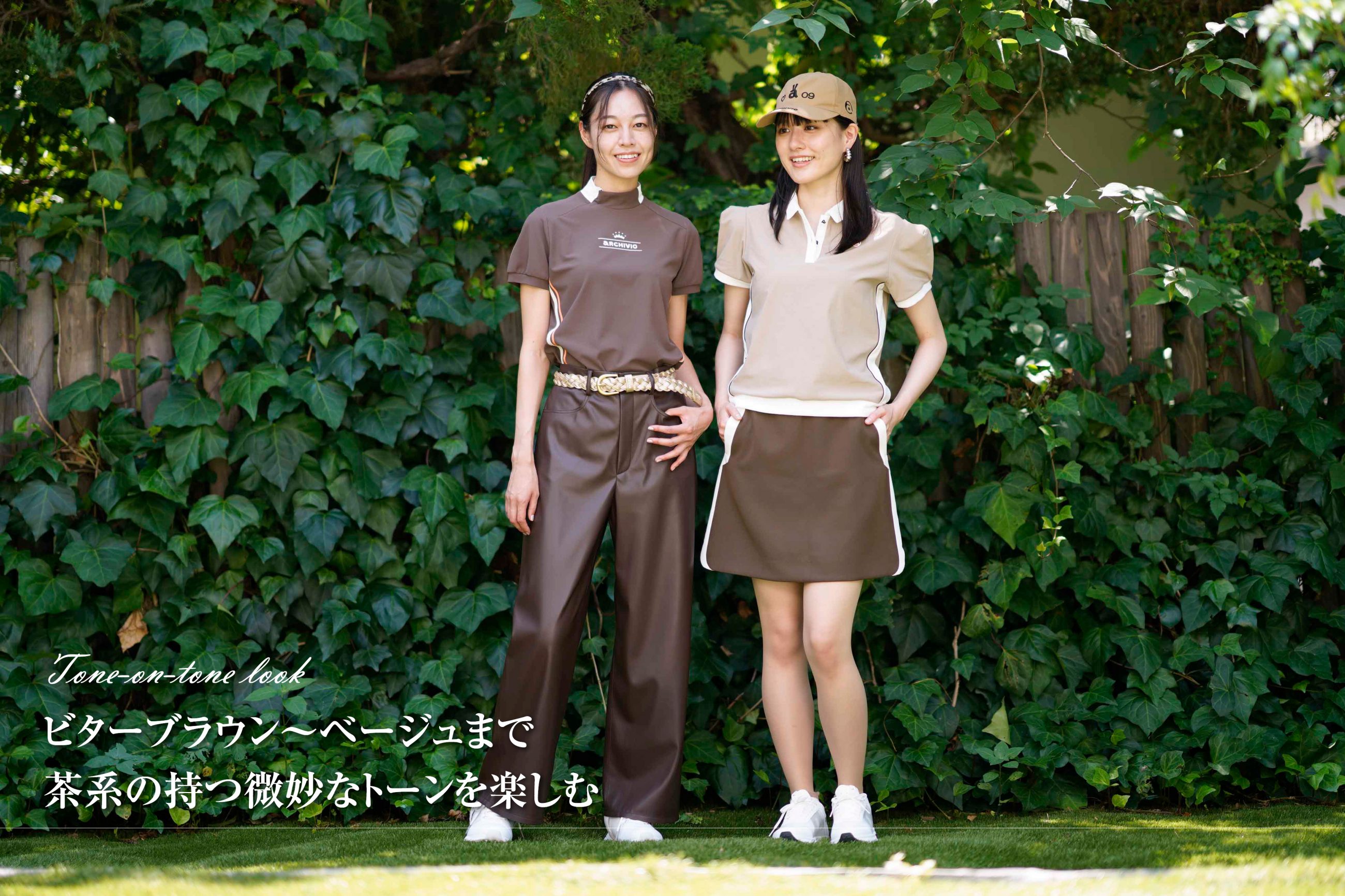 あまりアースカラーは着ないという方も、この秋はブラウンを絶対攻略したい。ナチュラルで雰囲気のあるブラウンは、もはやゴルフウェアのなかでもっとも注目される色。白や明るい色と合わせればエッジの効いたスポーティに。ベージュなどの同系色でまとめると優しく上品な一着に。黒やグレーなどの濃色を組み合わせれば、キリッとシックでスタイリッシュな佇まいに。さまざまな着こなしができるブラウンの可能性を、この秋こそ全身で楽しみたい。