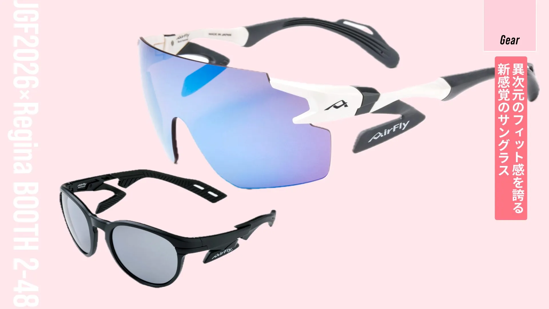 従来のサングラスとは違い、鼻パッドではなくこめかみ部分のサイドパッドでレンズを支える構造のため、汗によるずり落ちやメイク崩れが起きにくい新感覚のサングラス「エアフライ」。鼻パッドをなくしたことによるクリアな視界と、長時間かけていても圧迫感を感じにくいかけ心地で、快適なプレーをサポートしてくれます。