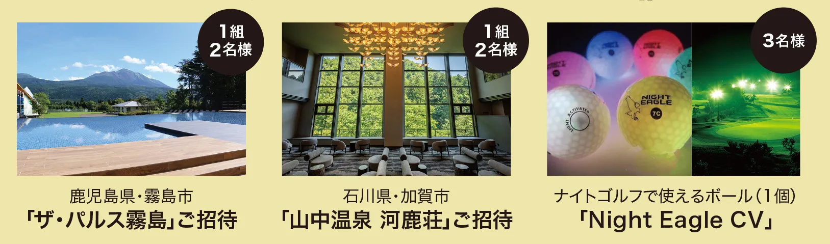 宿泊ペア招待券やボールが当たる!