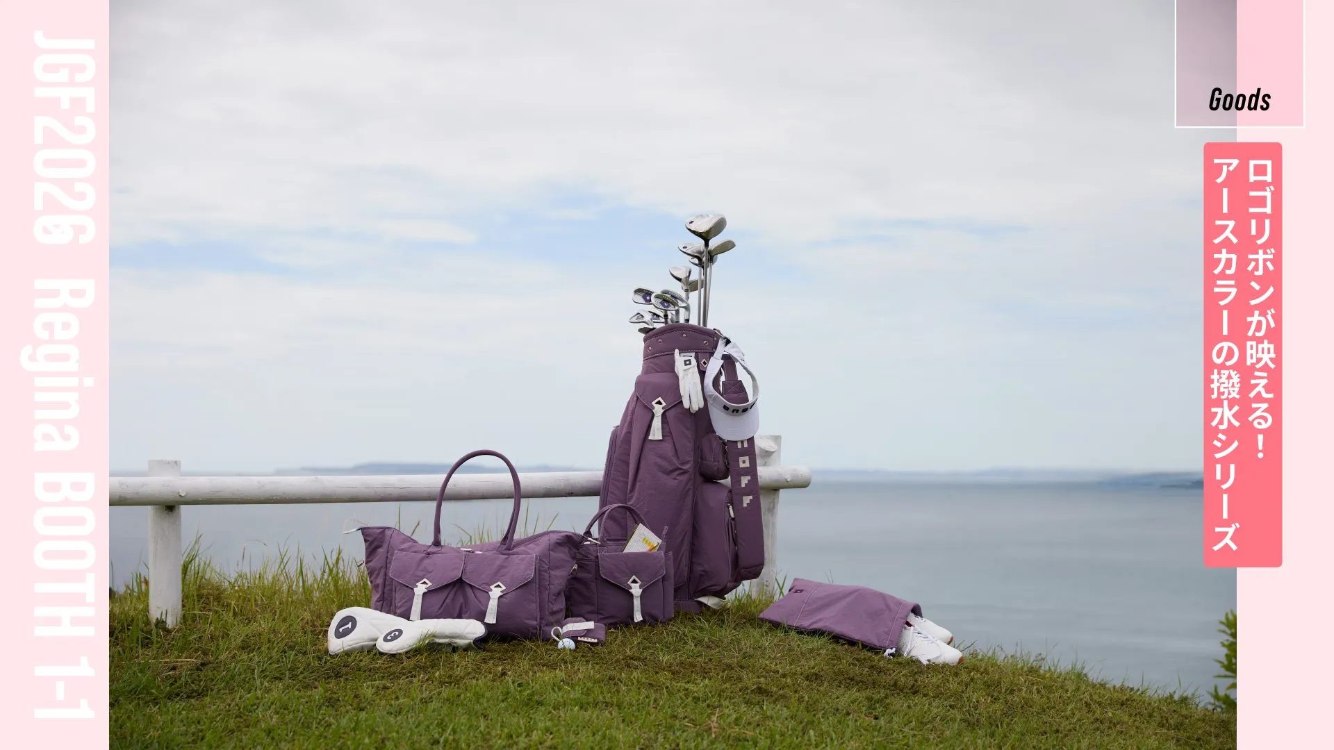 高強度のナイロン素材に撥水加工を施した、水や汚れに強いシリーズ(キャディバッグ、ボストンバッグ、ラウンドバッグ、シューズケース、ボールケース、クラブケース)が登場。アクセントにロゴ入りリボンがあしらわれたアースカラー4色(パープル、ミストグリーン、ダスティピンク、ネイビー)展開で、フェミニンながら大人の品格が漂います。