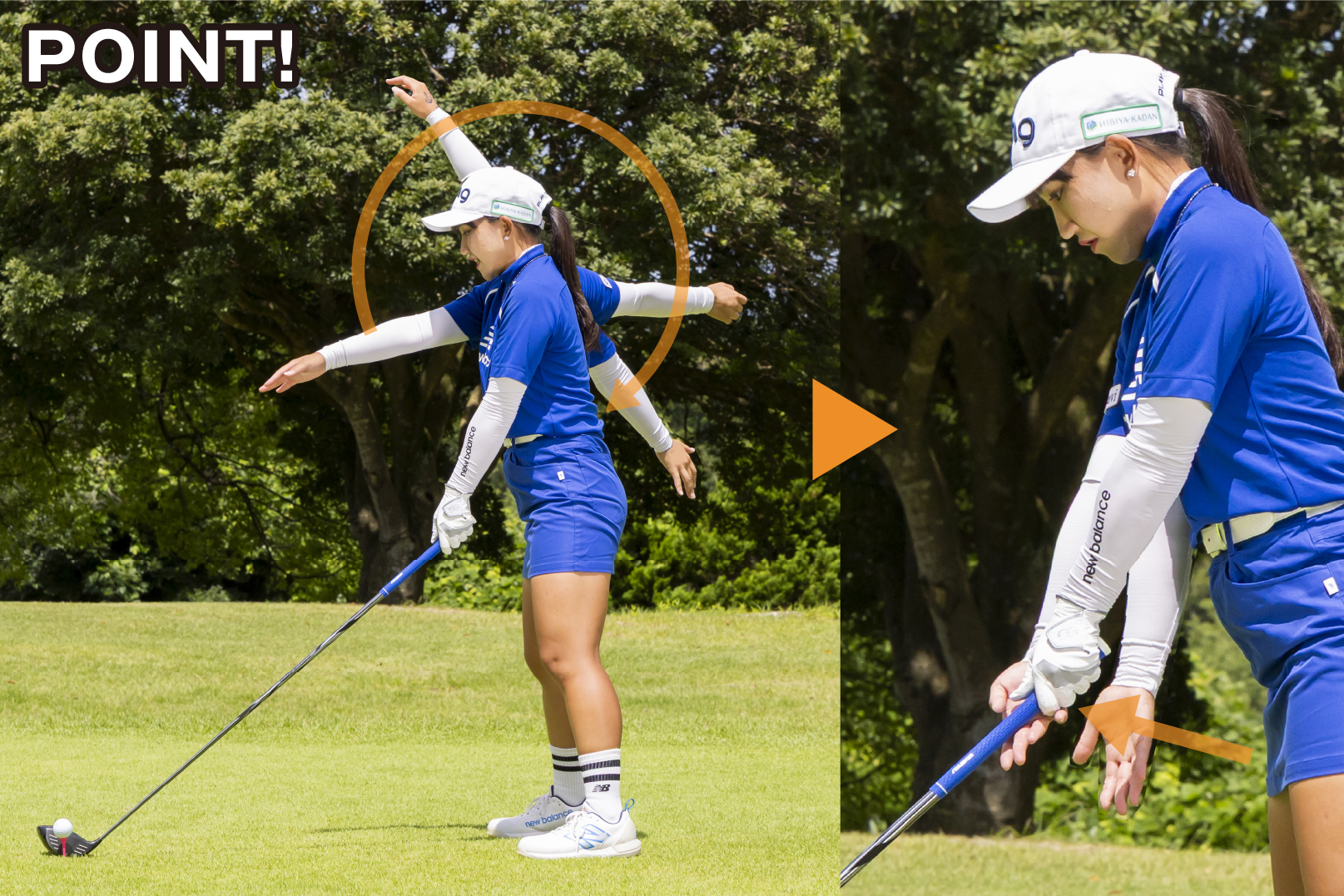 ◆“右腕ぐるり”&“下からグリップ”で正しいアドレスを作る