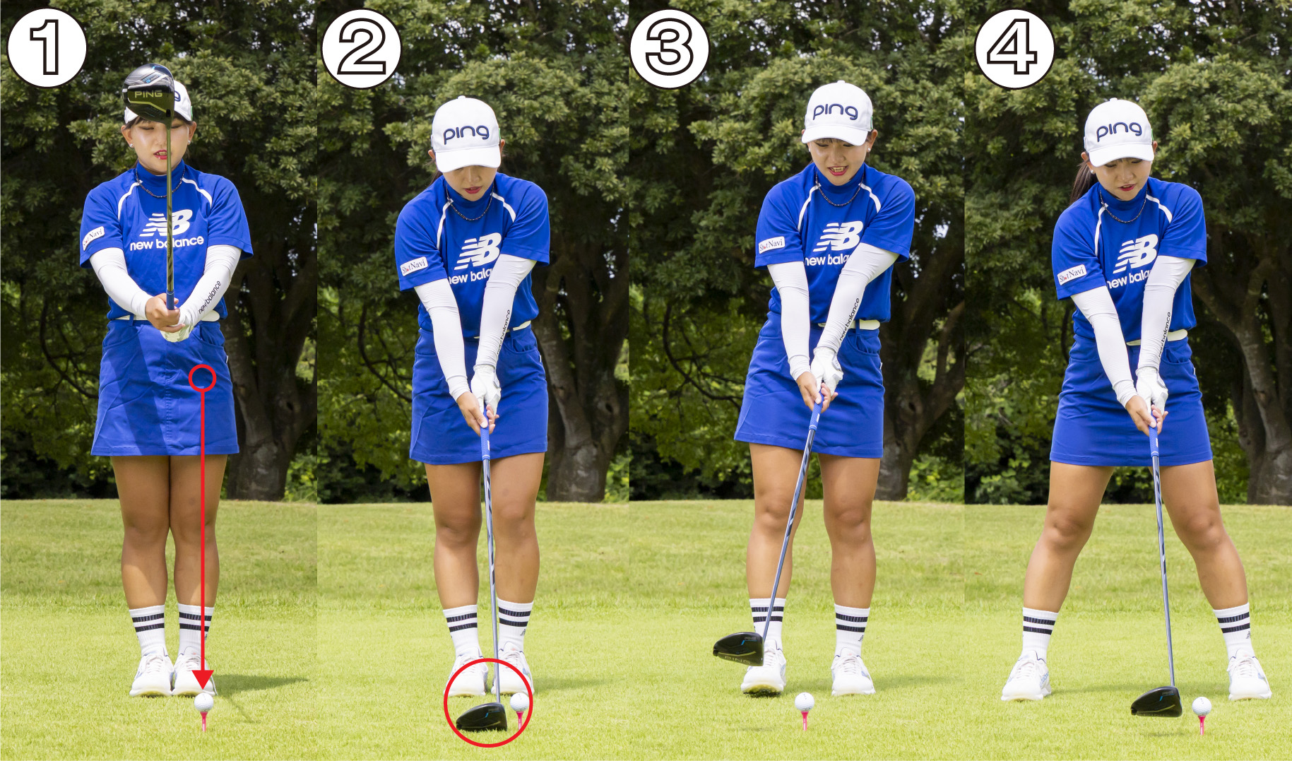鈴木真緒プロによれば、「コースでは真っすぐ飛ばすことも飛距離アップには大切な要素」と言います。ボールを左右に大きく曲げてしまった瞬間に、飛距離が落ちてしまうからです。ボールを真っすぐ飛ばすには、常に体の正面にクラブヘッドをキープするイメージを持ちましょう!