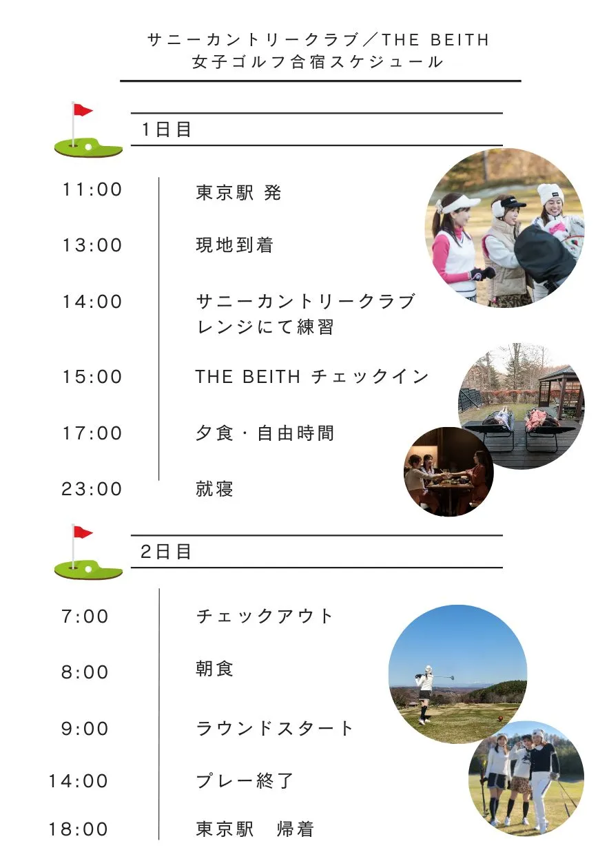 近場でサクッと日帰りラウンドも気軽でいいですが、たまには少し遠出して、泊まりがけでゴルフ三昧の週末も楽しみたいもの。都心から新幹線利用で約2時間、長野県佐久市の「サニーカントリークラブ」併設のサウナヴィラ「THE BEITH」で、読者モデル3名が女子だけの一泊二日ゴルフ合宿を体験してきました!