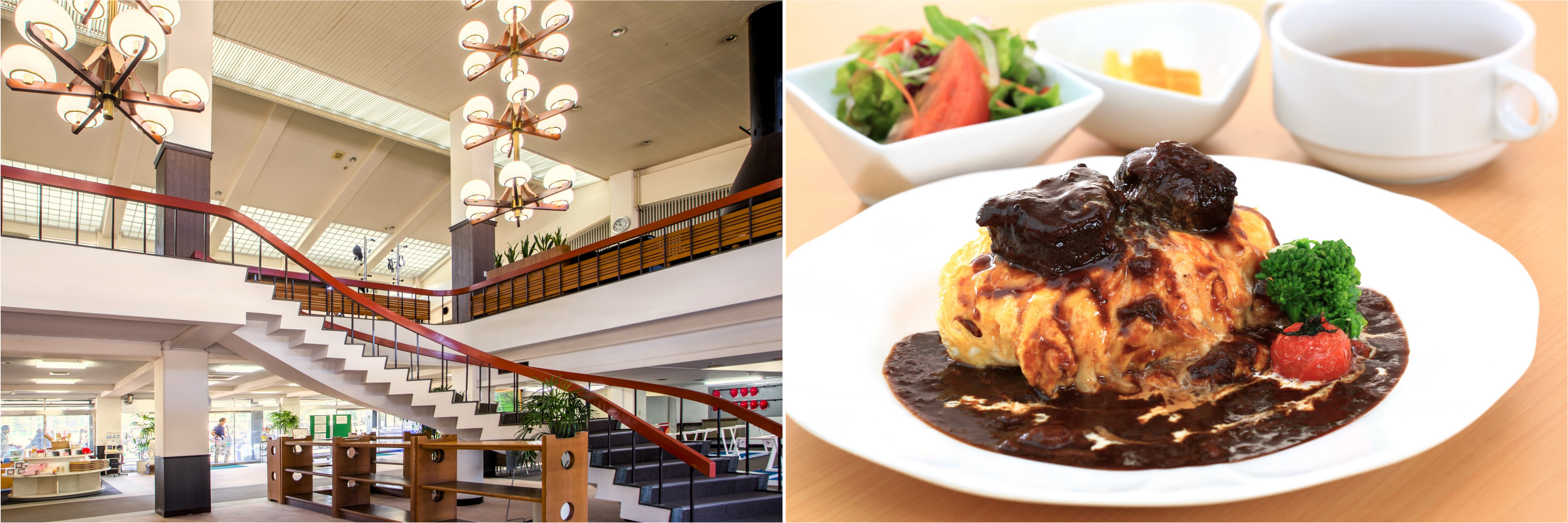 クラブハウスは歴史を感じさせる建物だが手入れが行き届いて快適。料理の写真は人気メニューの『ふわとろオムライスのビーフシチューソースかけ』