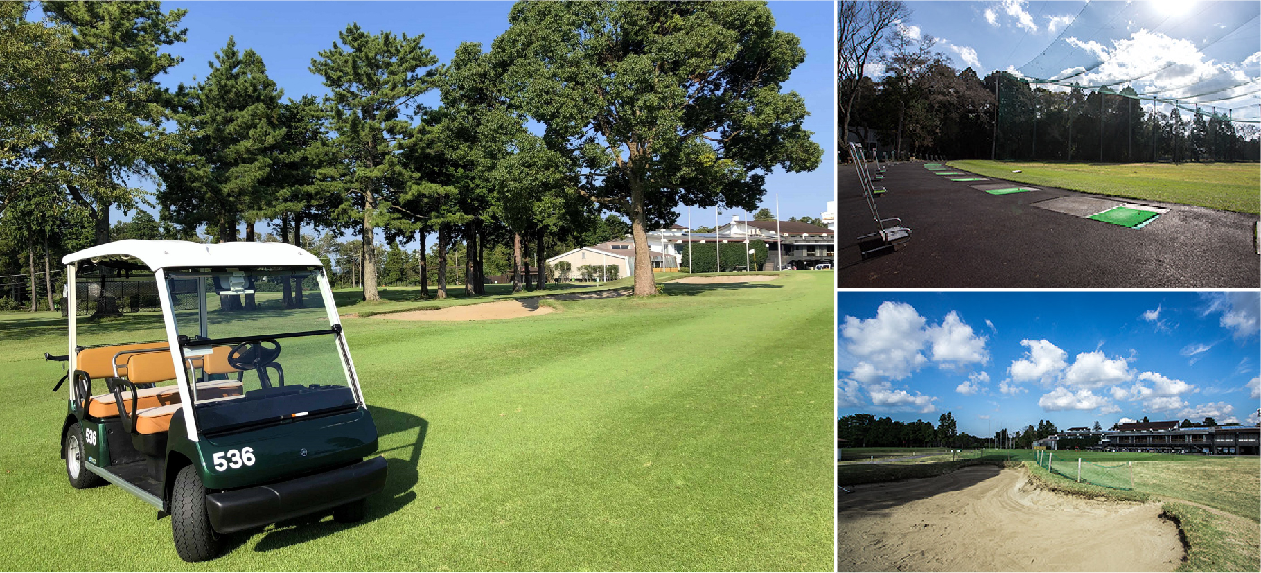 ナビ付乗用カートはフェアウェイ乗り入れOK(天候等により不可の場合あり)。練習施設はドライビングレンジ、アプローチ・バンカー練習場を完備。