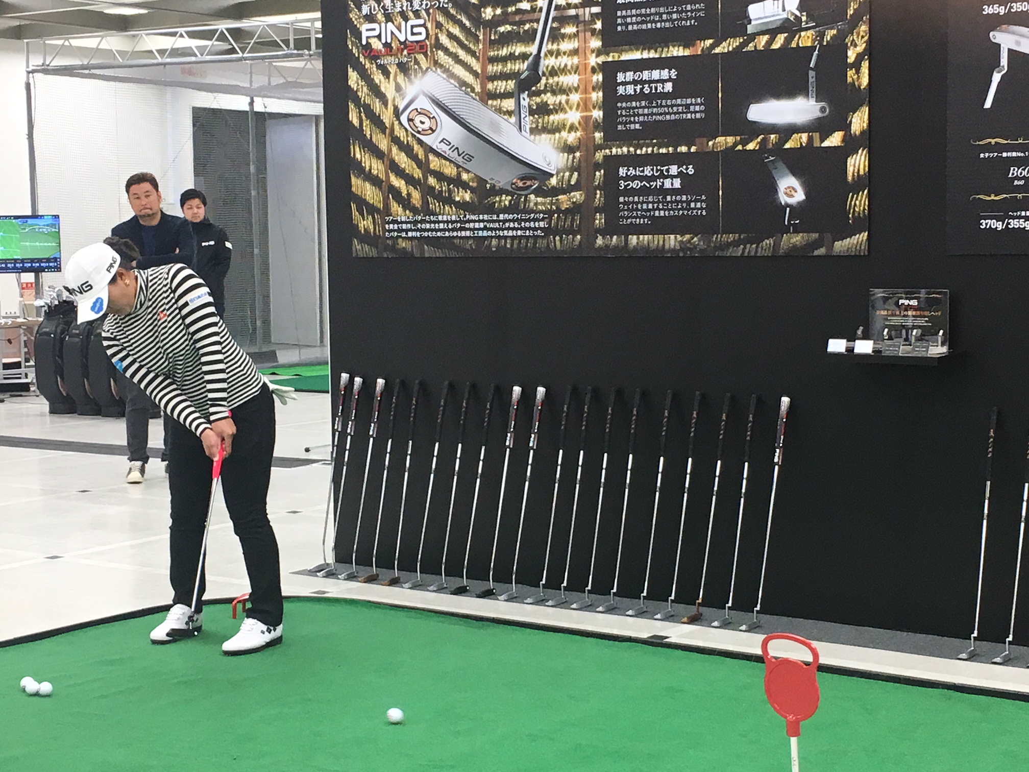 トークショーの後は、ドライバー、アイアン、パターをそれぞれ試打。G400 MAXについては「ヘッドが大きいから安心感があって構えやすいですね」と本人も大満足。何よりも驚いたのが、「G700 アイアン」。いつもは150ヤードくらい飛ばす7番アイアンで、この日記録したのがなんと187ヤード! 思わず漏れた言葉が「オバケ…」(笑)。賞金女王も恐れるほどの飛距離性能に会場もざわつきました。普段、試合では見ることのできない鈴木プロの素顔はちょっぴり照れ屋だけど、よく笑う、とってもキュートな女の子。PINGのパワーアップしたニューモデルで2018年の活躍も期待できそう! またみんなで応援しましょう。