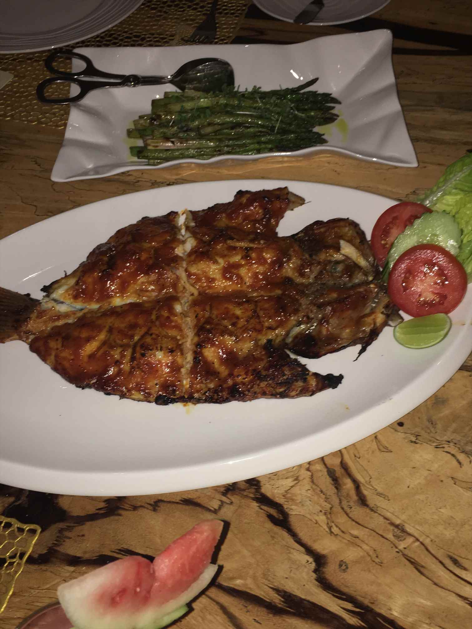 1日目のディナーはホテルの地中海料理レストランの「ソレイユ」にて。人気のあるレストランなので事前に予約をしておいたほうがいいそうです。日中は海やプールを眺めながら開放的な気分に、夜はエレガントな雰囲気に様変わりし、ランチもディナーも素敵な空間の中で新鮮な魚やお肉などがいただけます。