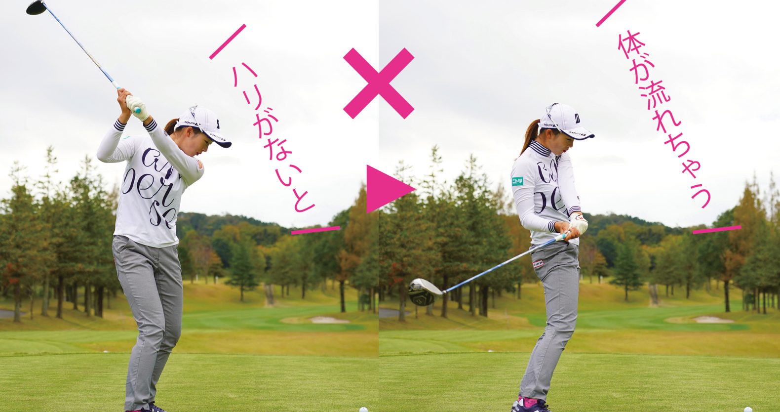 今後も期待のかかる若手女子プロにスポットを当てます。今回はショット力を武器に戦う松田鈴英プロです!左肩が地面を指すようにしっかりと胸や肩を回すと、自然に手元…
